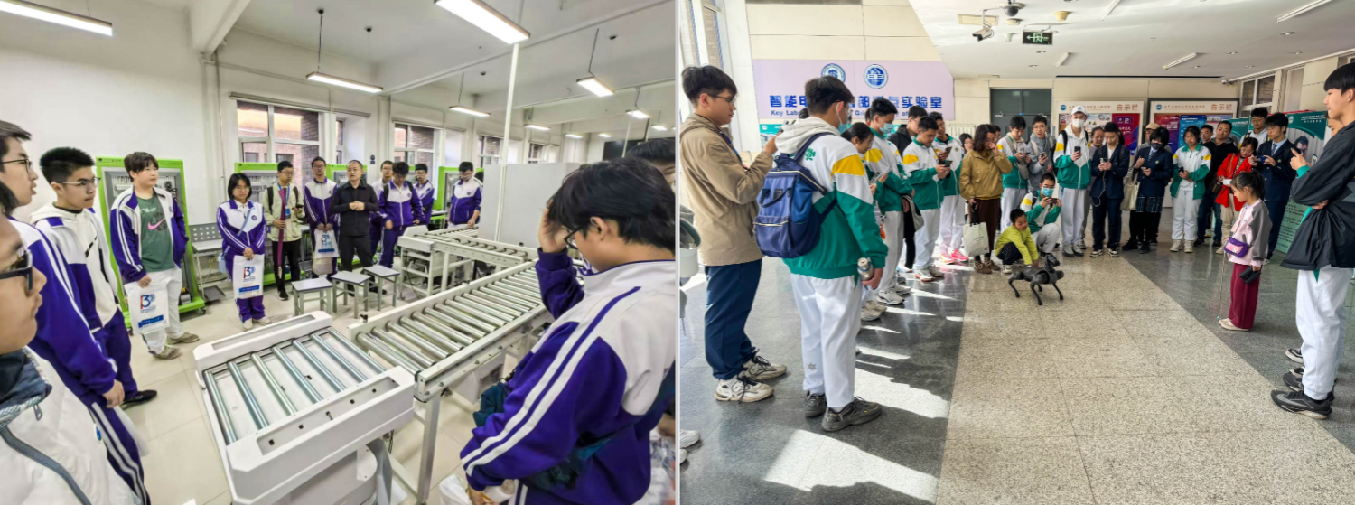 Inside the Popular Science Education Base of Smart Machines, achievements such as robotic arms, laser printing, and quadruped robotic dogs attracted the attention of teachers, students, and parents from dozens of middle schools. Professor Yu Heyang demonstrated the grasping and assembly functions of a six-axis robotic arm. Students personally operated the control handle to complete complex commands, and learned about its application potential in the industrial field through practice. Professor Bai Ruifeng showcased the laser printing technology, precisely engraving four characters “咕咕番