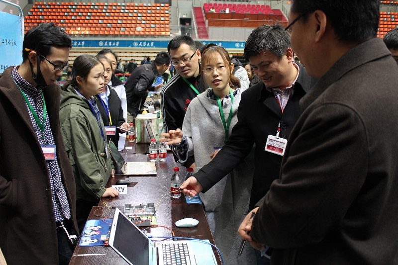 我校共有6支代表队入围了总决赛,其中“水陆两栖机器蛇”、“机器人对战系统”、“基于深度学习的人脸识别系统”等三个作品获一等奖,“自主导航服务机器人”作品获二等奖,“基于无线物联网的自控养殖系统”、“人机合一”获等两个作品获三等奖。现场展示中,“机器人对战系统”格外吸引同学们的目光,作品在真实环境中进行互动游戏,营造身临其境的角色体验,实现了网络游戏实景化、实景游戏网络化,作品涉及信息技术、网络技术、红外通信技术、数字信号处理技术,以及服务器端的数据计算和分析,充分体现了多学科交叉融合的“新工科”特色。