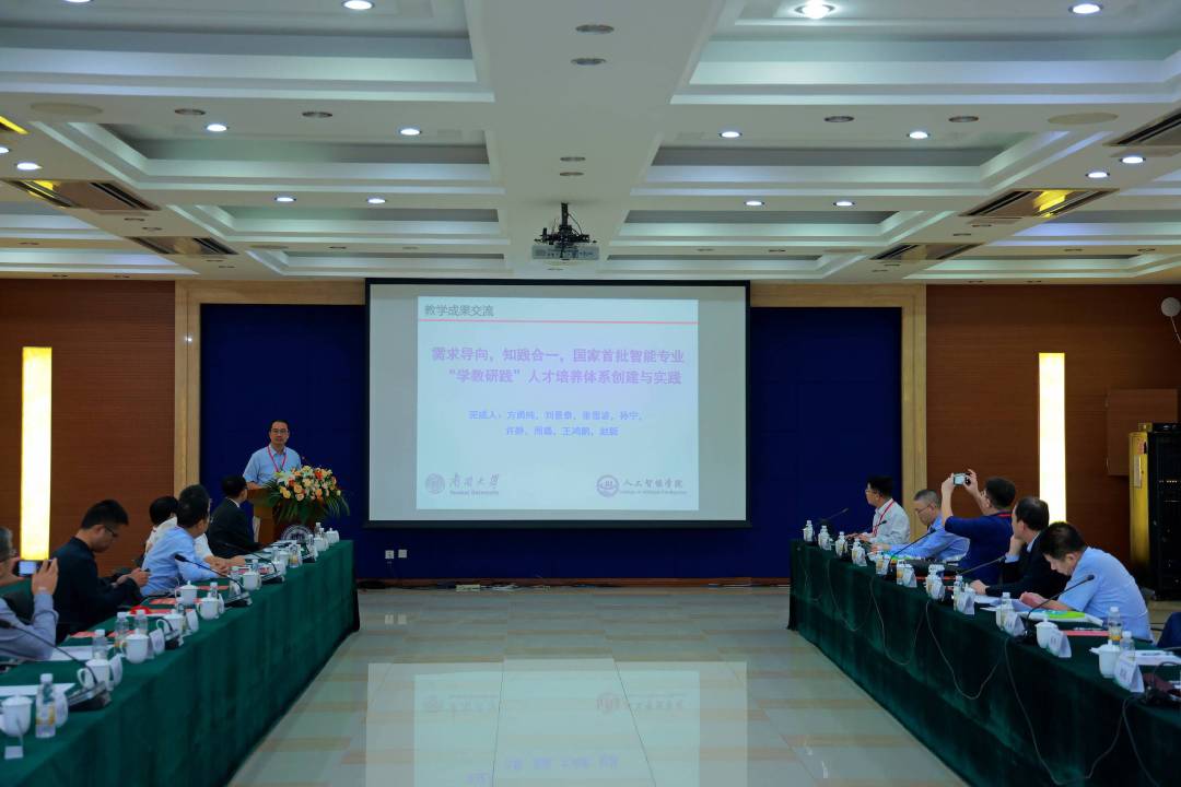 南开大学人工智能学院院长赵新教授以《需求导向,知践合一,国家首批智能专业“学教研践”人才培养体系创建与实践》为题,讲述了“老学院建新学科”,专业初创之际的“拓荒”实践。